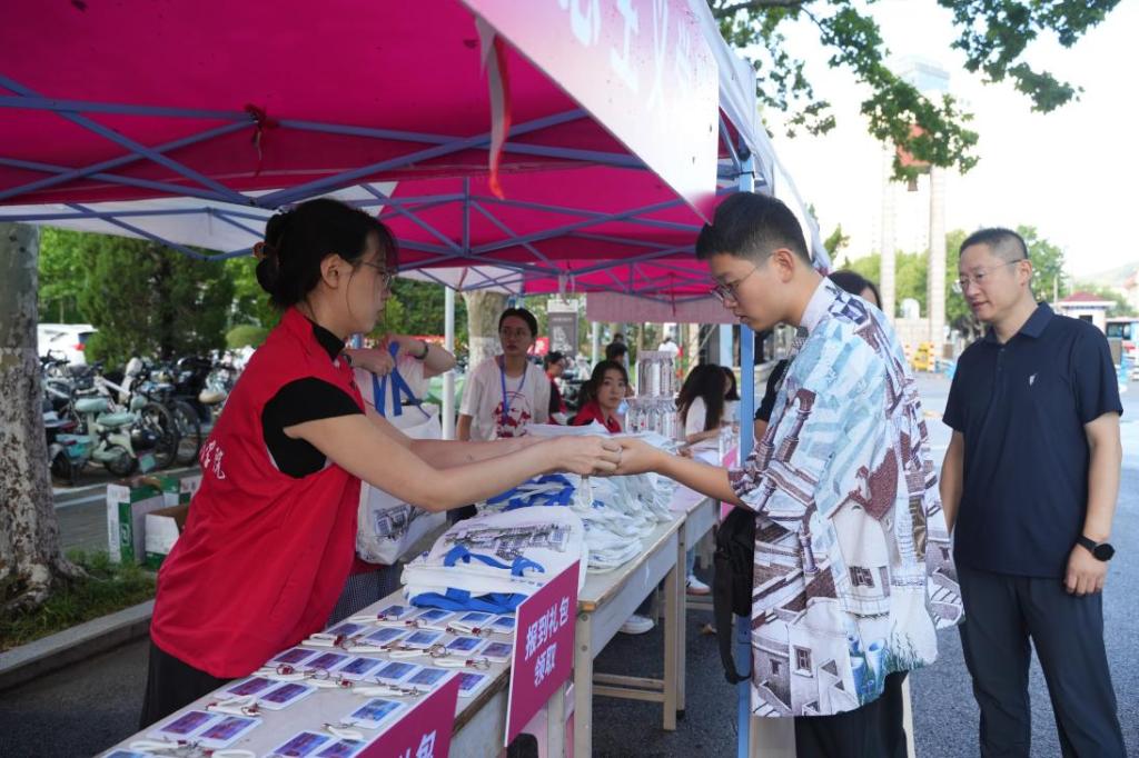 为新生们准备了迎新礼包,包括印有“你向海而生,我为梦而来”专属标志的书包、欲漫涩