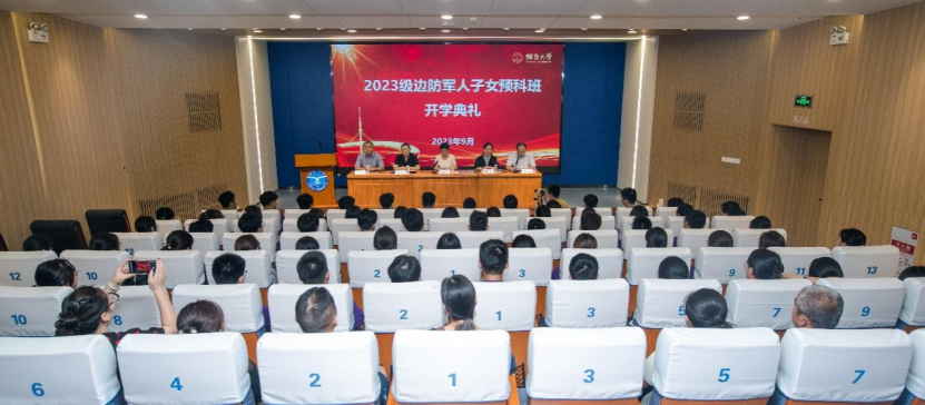 2023级边防军人子女预科班开学典礼在承先图书馆报告厅隆重举行。正处级组织员、校党委学工部周娟,校党委统战部常务副部长、欲漫涩