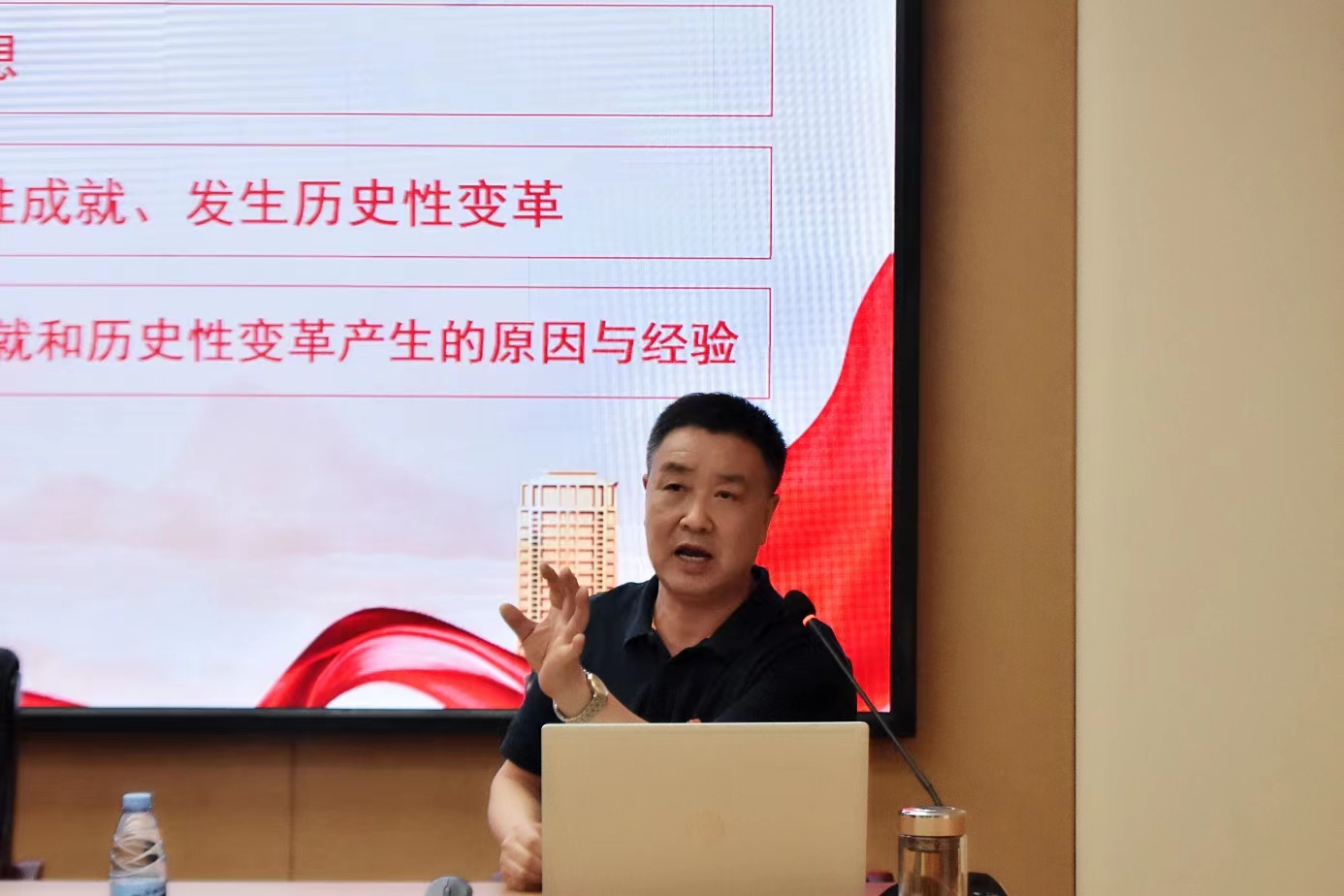 资深教授孟庆义为教学团队作专题辅导讲座。他从深刻理解中国特色社会主义新时代的内涵和意义,深刻把握“十个明确”和“十四个坚持”的科学内涵,深刻领会“两个确立”的决定性意义,深刻认识新时代取得历史性成就、发生历史性变革及其产生的原因与经验等几方面进行了深入地阐释和解析。为思政课教师进一步梳理了《习近平新时代中国特色社会主义思想概论》课程专题化教学框架内容,分析了教学中需要注意的问题。他强调,“打铁还需自身硬”为师更要本领强。思政课教师要“打造”过硬的业务素养,以深厚的理论功底赢得学生,用高尚的人格感染学生;要认真学习习近平总书记对思政课的重要论述,教学中要坚持“内容为王”理念,创新教学方式方法,让学生真正喜欢听、听得懂、能理解,达到深入浅出、融会贯通的效果;要适应新时代的育人需要,完成思政课教师的使命担当。