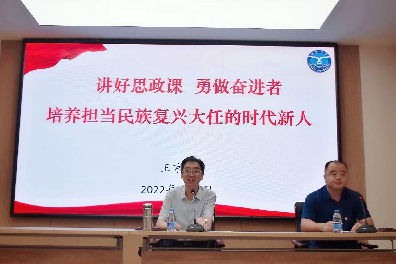 王京强就如何讲好《习近平新时代中国特色社会主义思想概论》课程,对广大思政课教师提出了四点希望。第一,要坚定正确政治立场,提升思想境界,落实立德树人根本任务。要自觉学习马克思主义理论,深刻领会党的教育方针,理论联系实际“教活”思政课。新时代,思政课教师须以问题为导向,教学内容与教学方法都要与时俱进,心系国家大事,情系社会发展。第二,要深入把握教学内容,全面、及时、准确地讲深讲透习近平新时代中国特色社会主义思想。应当“立足”教材又“跳出”教材,建构起教材内容与教学内容之间“若即若离”的关系,作出合理的教学设计和内容安排,在传授理论知识体系的同时,更要表达出知识所蕴含的思维逻辑与价值理念。第三,要深入走进学生、了解学生,熟悉新时代大学生思想发展和成长成才规律,做到润物无声、久久为功。要自觉培养着眼大问题、真问题和根本问题的理论意识,提升关注现实、回应问题、破解难题的理论勇气,增强解疑释惑的临场应用能力,引导学生系统掌握“当代中国马克思主义、21世纪马克思主义”这一锐利思想武器。第四,要深刻理解思政课本质要求,创新思维方式、教学模式,提升业务能力,实现思政课的提质增效。要把道理讲深、讲透、讲活,做到以“理”服人、以“理”育人。在课堂教学中要将有限的时间资源,用于分析阐释重难点问题,改变“点点必讲、面面俱到、平分秋色、内容庞杂”的授课方式,确立“有所取舍、主次分明、错落有致、讲就讲好”的授课原则,激发学生深入思考,引发学生思想共鸣,达到思政课“温暖鲜活、可亲可信”应有的样子。