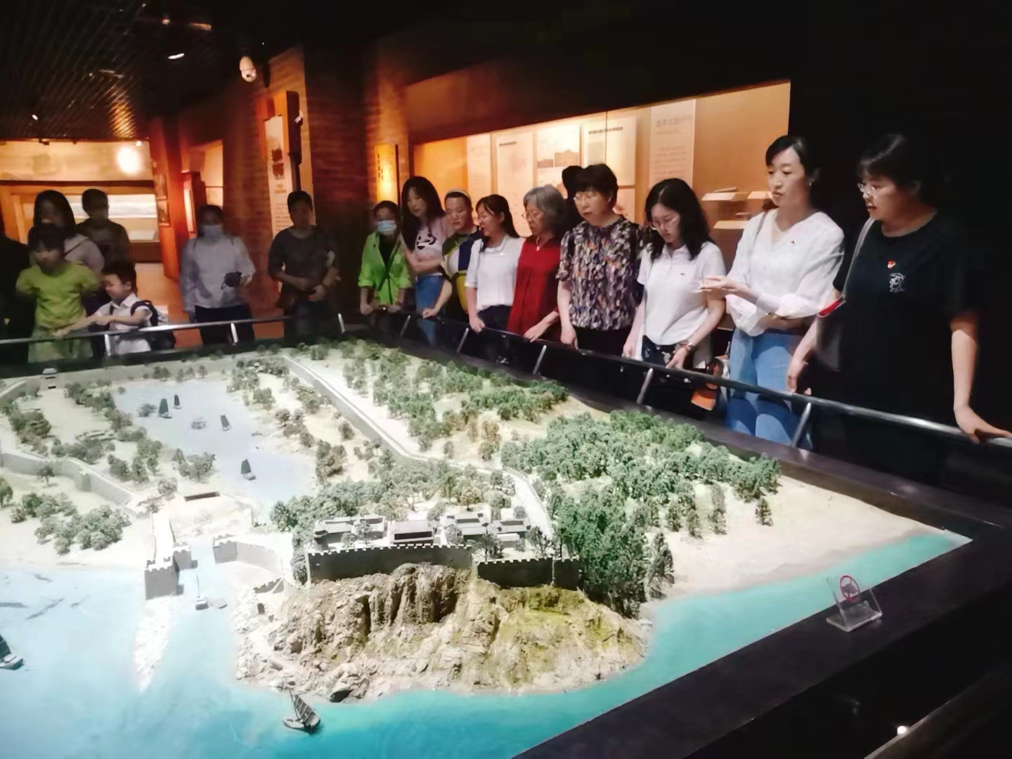 在烟台博物馆,大家集中参观了“山海古韵”和“世纪之路”两个场馆。在“山海古韵”展馆,大家通过“史前初曙”、“东莱兴衰”、“盛世仙乡”、“文化港湾”、“海防锁钥”五个部分,了解了烟台地区上自旧石器时代下至清末上万年间的发展历程以及具有鲜明地域特色的海洋文化、莱夷文化、青铜文化等多元文化。“世纪之路”展馆则以丰富的历史文物、全新的展示方式和先进的科技手段,从一亿年前胶东大陆生活的古生物种群开始,向大家展现了东夷文明、周代古国、海防要地、烟台开埠、抗日战争和烟台解放的历史发展进程。随后,大家又参观了胶东革命纪念馆和烟台山抗日烈士纪念碑。一幅幅照片和一段段碑文,给我们讲述着烟台人民在抗日战争和解放战争中英勇斗争的故事。