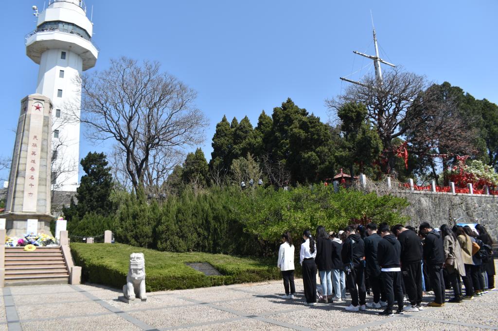 全体研究生怀着无比崇高的敬意,前往烟台山抗日烈士纪念塔开展清明祭扫活动。