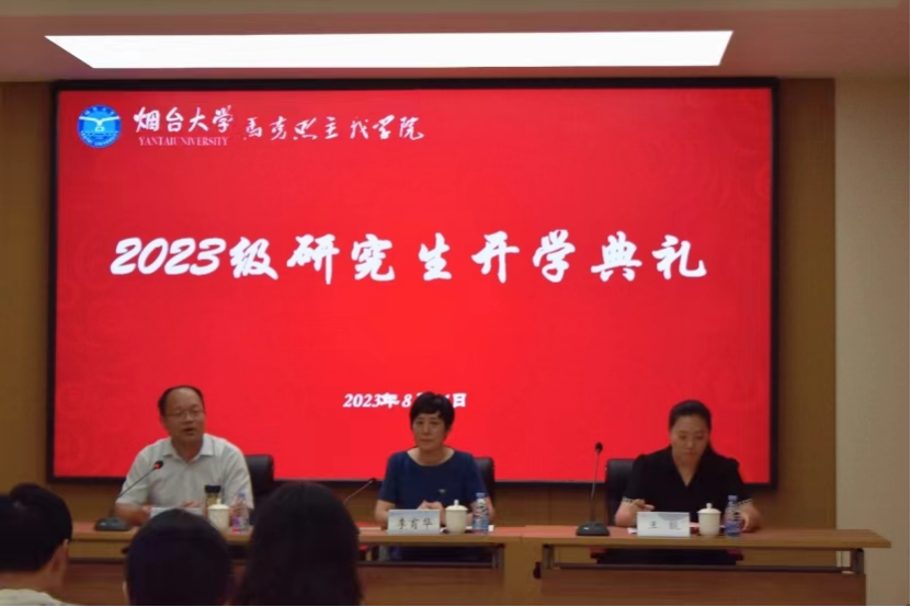 在校生代表2021级研究生杨佳丽向新生分享研究生生活的经验与体会,并鼓励师弟师妹立鸿鹄志、求真学问、行长远路,做有理想的奋进者、有本领的接班人、知行合一的实干家。2023级研究生新生代表孙钰倡议同学们谨记“守信求实好学力行”的校训,传承“海纳百川 敢为人先”的烟大精神;努力成为知识的发现者、真理的探索者、理想的奋斗者,不断思考不断质疑不断超越,成为一名合格的研究生。