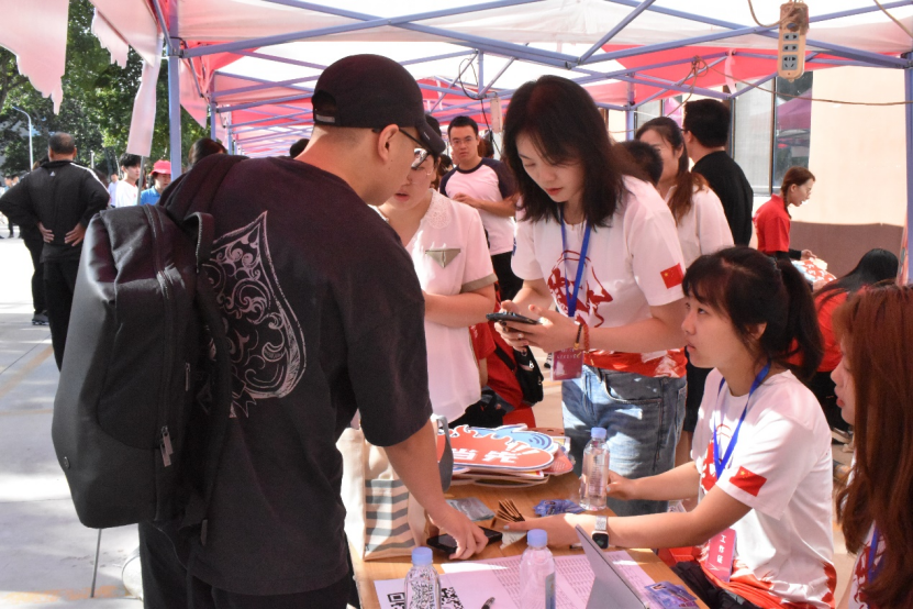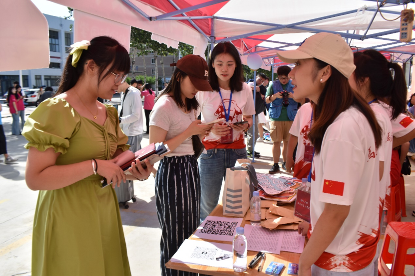 迎新现场,迎新志愿者耐心地为新生答疑解惑,有条不紊地帮助新生办理相关手续。欲漫涩