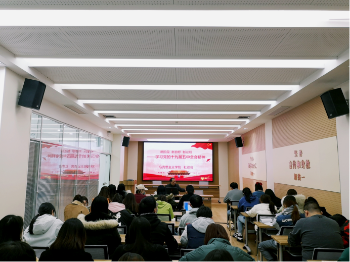 杜书记从我国发展环境面临的深刻复杂变化、实现社会主义现代化远景目标、“十四五”时期经济社会发展的指导思想和必须遵循的原则、“十四五”时期经济社会发展主要目标以及“十四五”时期的工作要求等层面对党的十九届五中全会的精神进行了阐释。并提出作为新时代坚定的马克思主义者,要用理论武装头脑,并积极投身于社会实践,在自己的专业中发光发热。