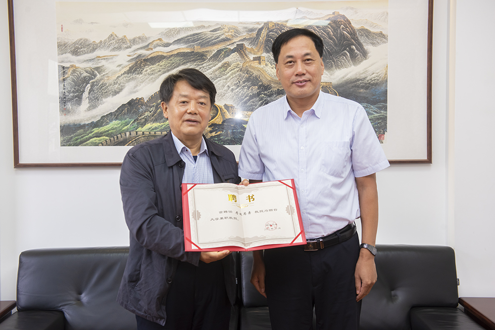 颁发了兼职教授聘书,山东省政协文化文史和学习委员会副主任崔明德主持讲座。