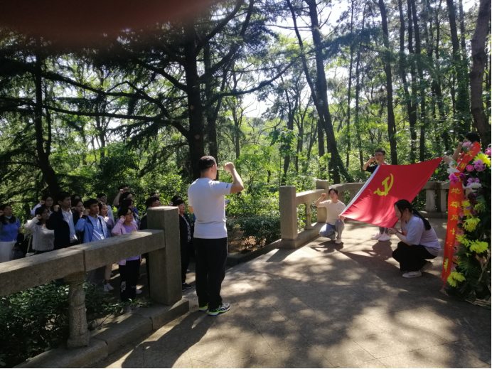 在天福山纪念塔面前,全体党员庄严肃立,高举右拳,面对鲜红的党旗,重温入了党誓词,进一步坚定了理想信念,提高了党性修养。
