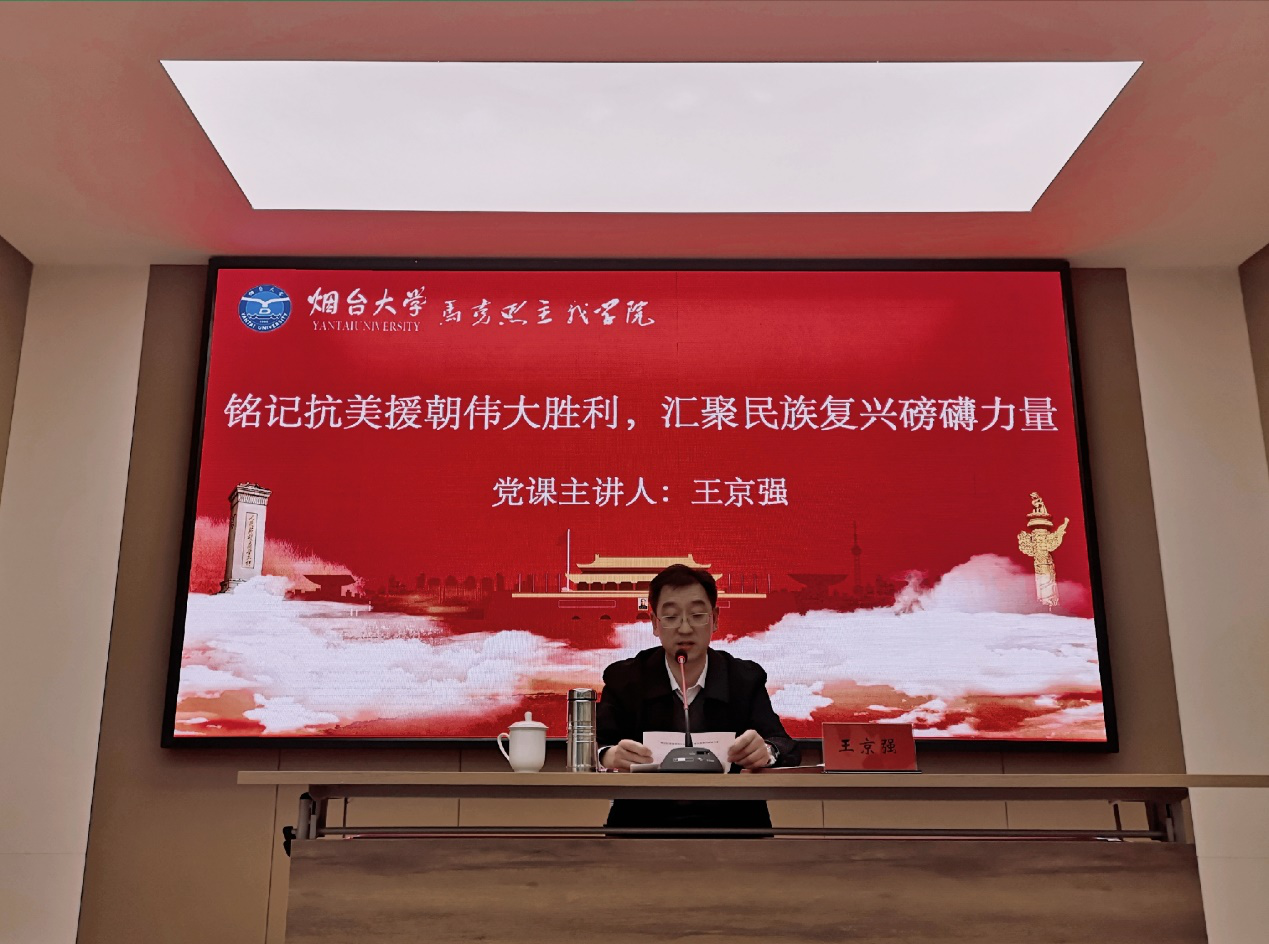 研究生党支部在305多功能会议室举办抗美援朝专题党课,院党总支书记王京强为全体研究生和部分新入职教师,讲授题为“铭记抗美援朝伟大胜利,汇聚民族复兴磅礴力量”的党课。
