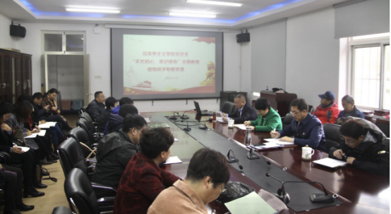 党总支书记王京强在文科馆135会议室,讲授题为“坚守初心,勇担使命,奋发有为,不断把新时代思想政治理论课改革创新推向新阶段”的主题教育专题党课,欲漫涩