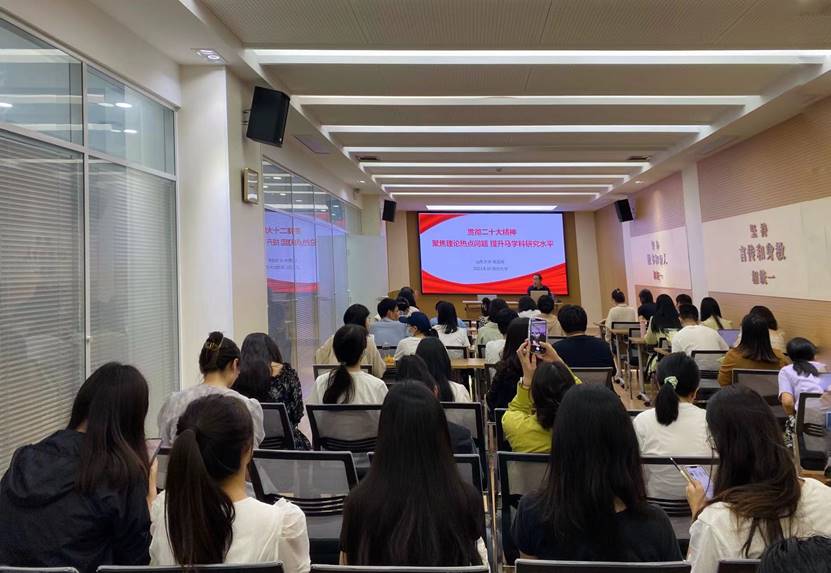 报告会上,徐国亮教授对年度马克思主义理论热点问题作了全面系统的分析,强调要关注学术研究的三大文化品牌,及时追踪学术热点,并围绕“两个结合”与马克思主义中国化时代化、中国式现代化理论与实践、全过程人民民主的科学内涵与制度体现、多学科视域中的共同富裕问题、中国共产党调查研究的理论与实践等学术热点问题进行了深入浅出的理论阐释。徐国亮教授指出,青年教师和研究生在课题申报和论文写作中要做到选题依据明确、综述层次清晰、研究方法得当,要有“庄稼不收年年种”的学术韧劲。徐国亮教授勉励青年教师和研究生,作为马克思主义理论研究者要有政治使命感,要站在时代的前沿思考重大的理论和实践问题,切实提升科研实效。