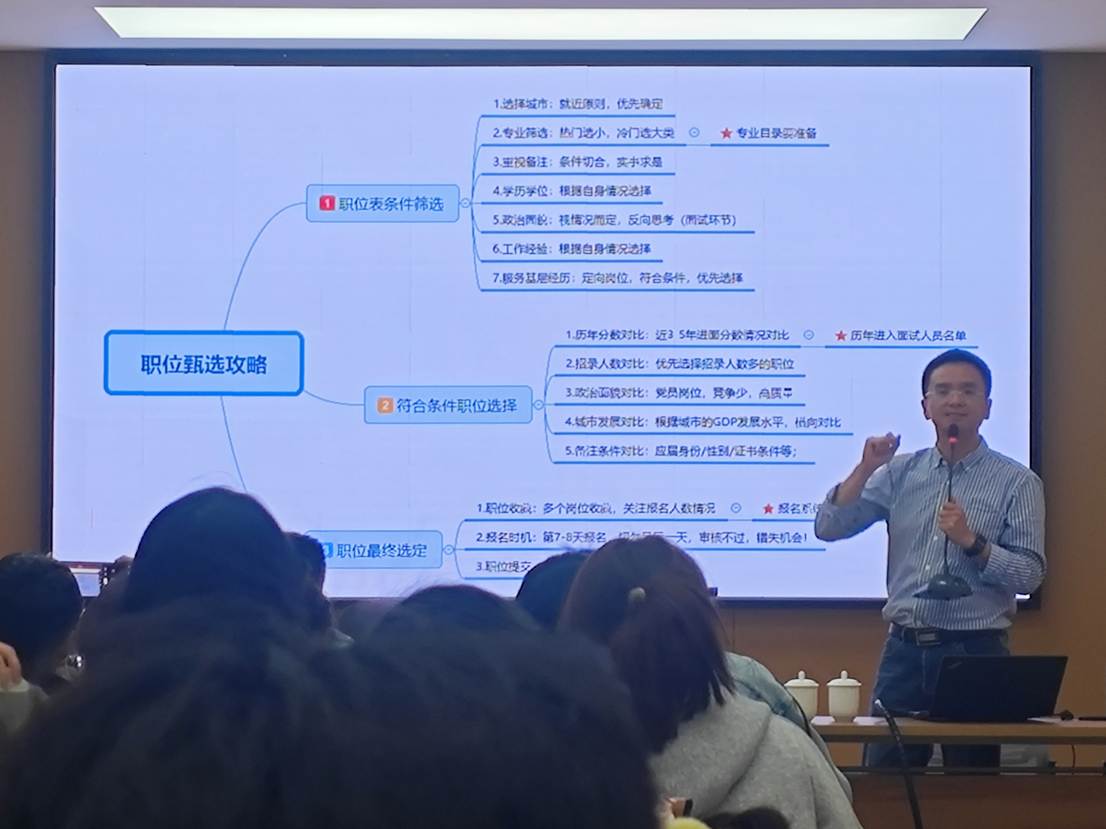 申鹏宇老师聚焦“政策性岗位科学选岗”,从专业类别、岗位情况、难度分析、选岗技巧四个方面展开讲解。他紧密结合欲漫涩