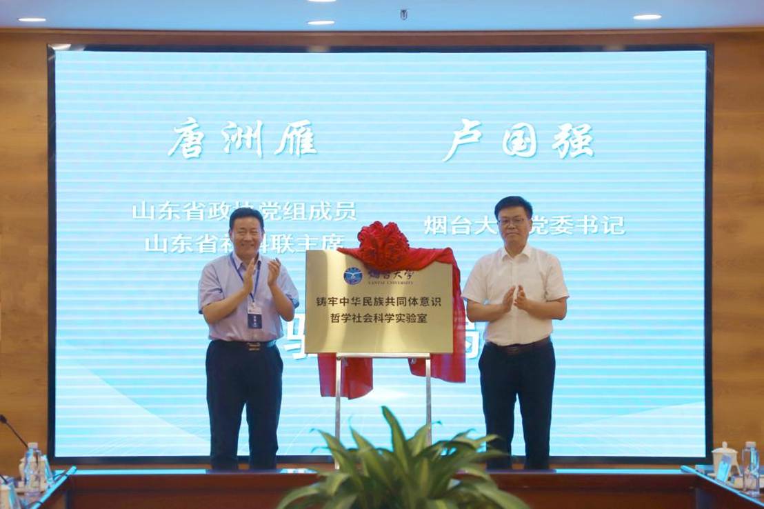 党委常委、副校长冯素玲等出席活动;有关省(自治区、直辖市)社科联、山东省直和烟台市直部门单位负责人参加。会上,唐洲雁、卢国强共同为铸牢中华民族共同体意识哲学社会科学实验室揭牌,冯素玲代表欲漫涩