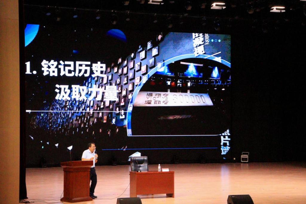 刘会清教授以《追光家国路,燃梦正青春》为题,引导广大新生系好进入大学的“第一粒扣子”,努力在“追光”中明确成长坐标,在“燃梦”中坚定报国志向。