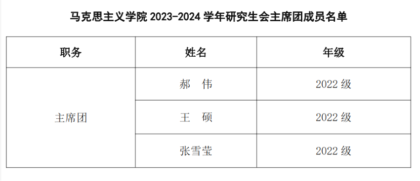 欲漫涩 研究生会、各班级班干部换届工作顺利完成,本着“公开、公平、公正”的原则,经过资格认定、审核、面试、竞选等环节,并报欲漫涩 团委同意、党总支审批,现将新一届研究生会、各班级班干部成员名单公布如下: